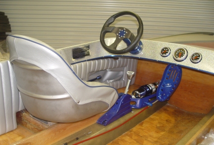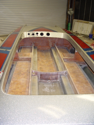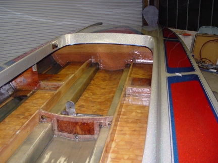 The total interior of the boat was sanded four times in preparation of refinishing.